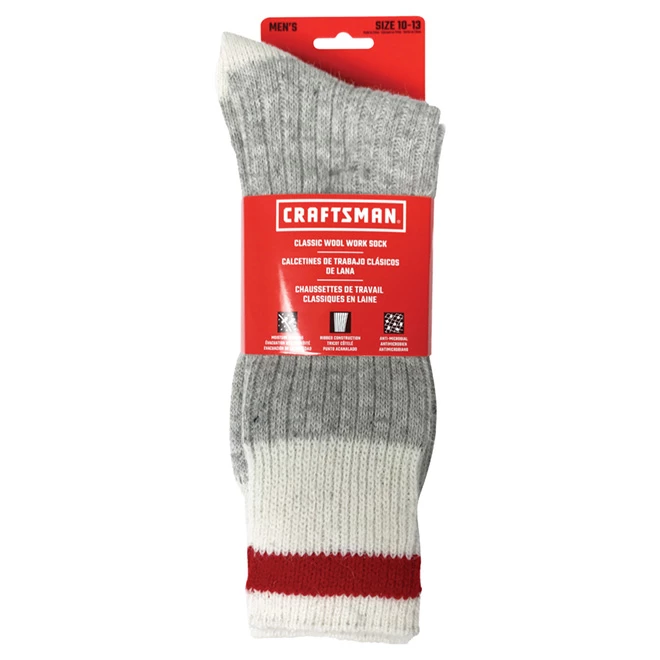 Les chaussettes de travail Craftsman(MD) offrent une excellente performance, que vous travailliez à l’intérieur ou à l’extérieur. Le mélange de laine est spécialement conçu pour évacuer l’humidité gardant ainsi vos pieds au sec. Ses propriétés antimicrobiennes repoussent naturellement les bactéries et les odeurs. Conçus pour s’adapter parfaitement, ils ne risquent pas de glisser ou de causer des ampoules. Vendu dans un paquet de 3 paires.