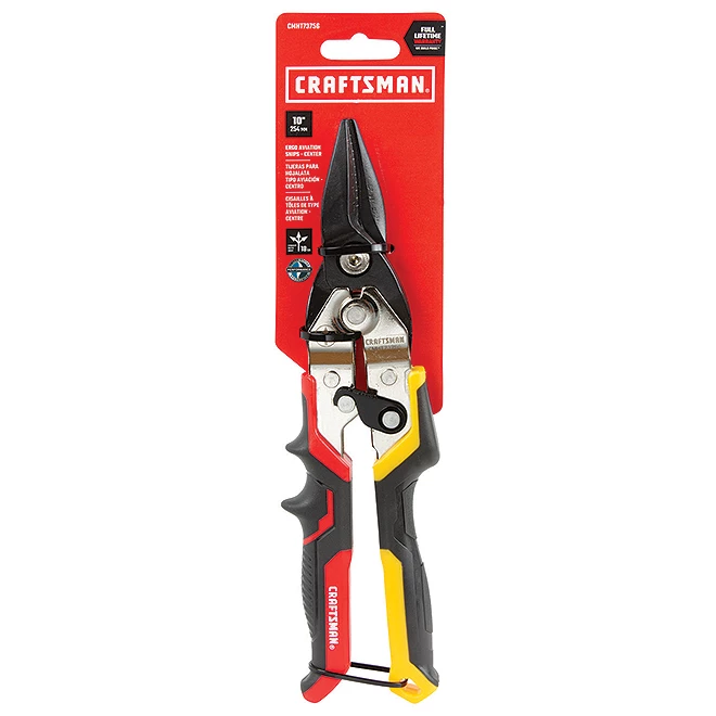 Cisailles de type aviation Craftsman, 10 po, coupe à droite, rouge et jaune