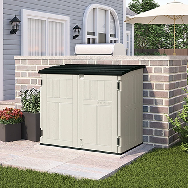 Coffre de rangement extérieur de Craftsman, résine, blanc et noir, 4 pi l. x 2 pi L.