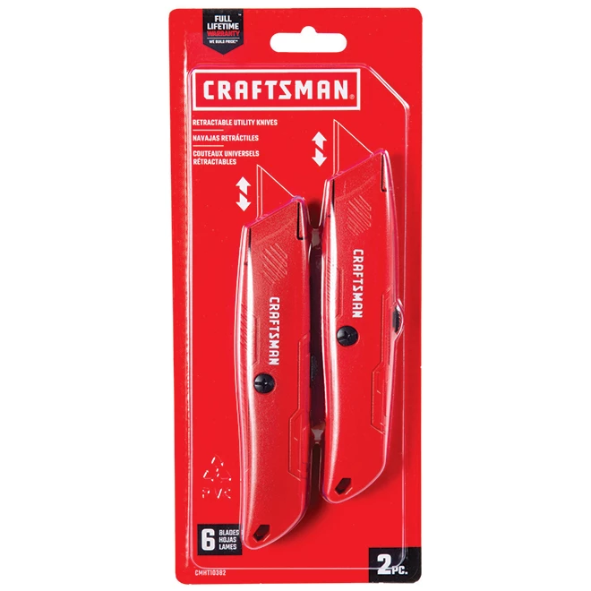 Couteaux utilitaires à 3 positions Craftsman 5 po, rouge, paquet de 2