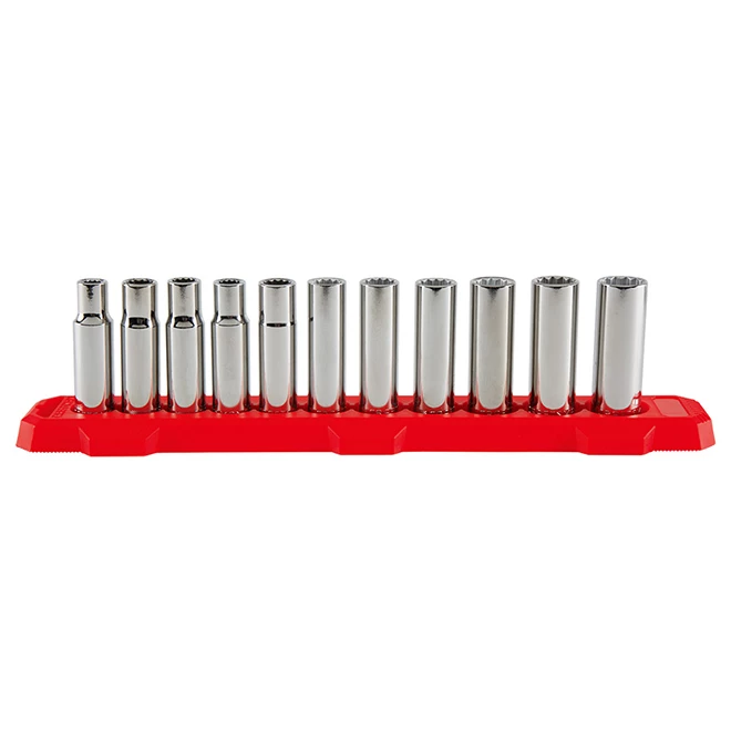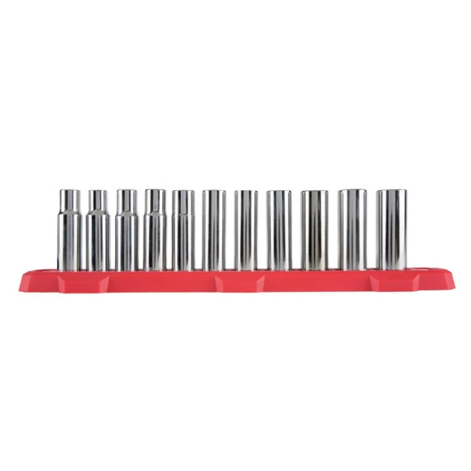 | Inclus | (11) douilles longues de 10 mm, 11 mm, 12 mm, 13 mm, 14 mm, 15 mm, 16 mm, 17 mm, 18 mm, 19 mm et 21 mm |