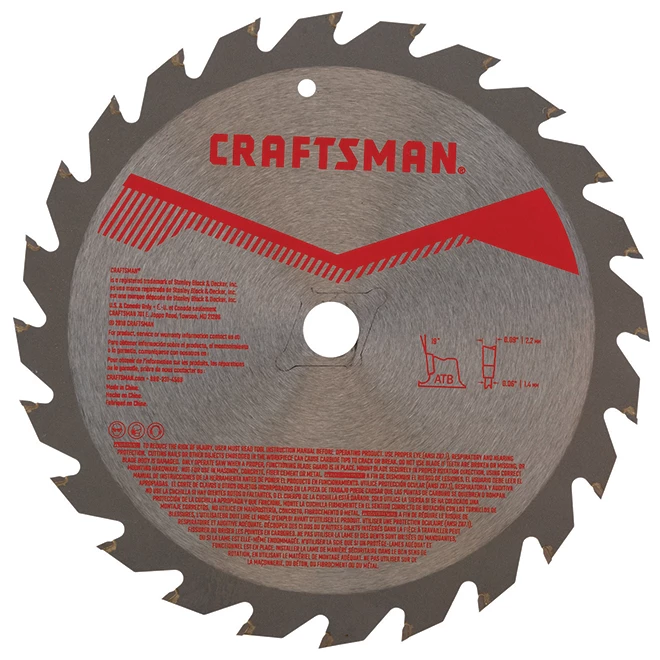 Lame de scie circulaire Craftsman, 7 1/4 po dia, 24DT, à biseaux alternés, dents en carbure