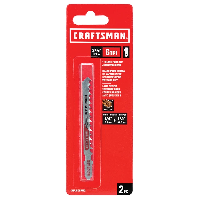 Lames de scie sauteuse à queue en T Craftsman, 6 DPP, bimétal, 2 par paquet, 4 po L.